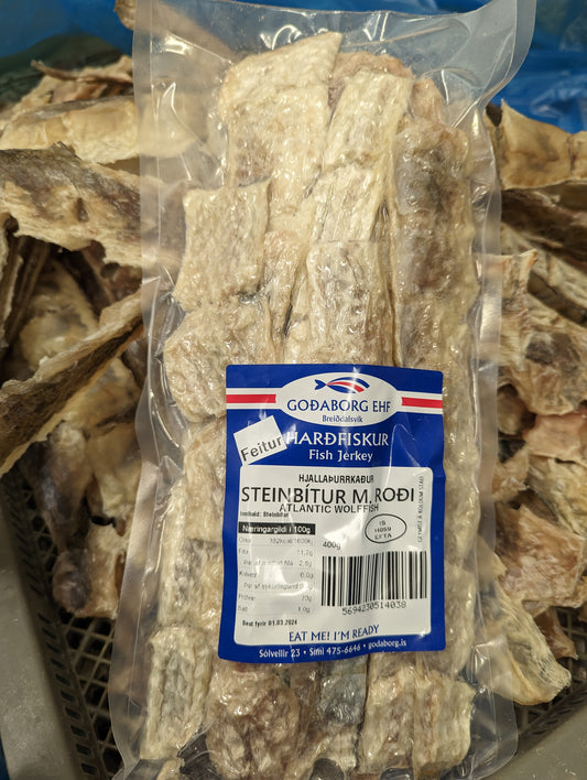 Uppselt, er í framleiðsluFeit Steinbítsflök 400gr